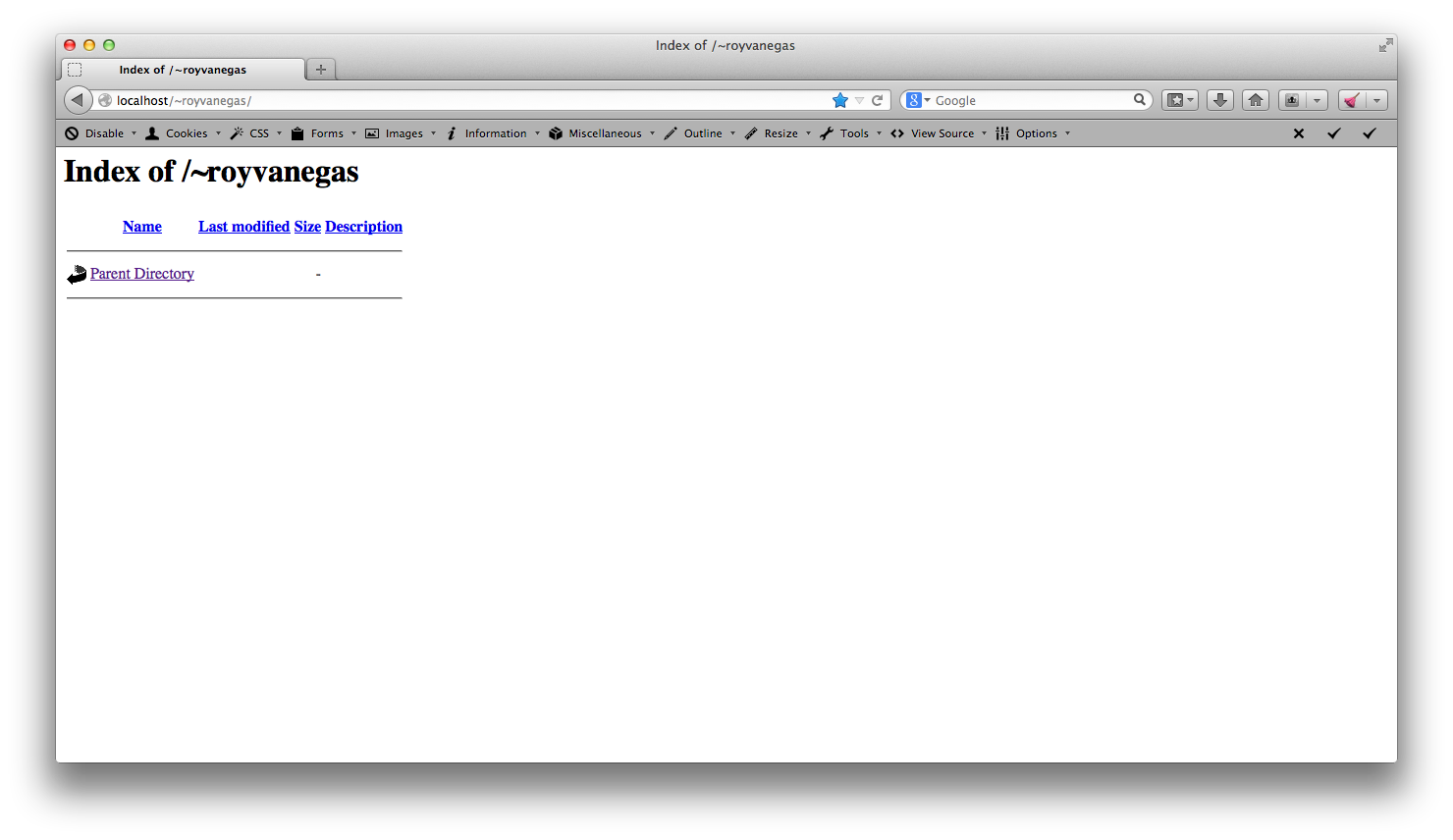 - Launch a browser and point it at localhost/~username. You should see something akin to the following: